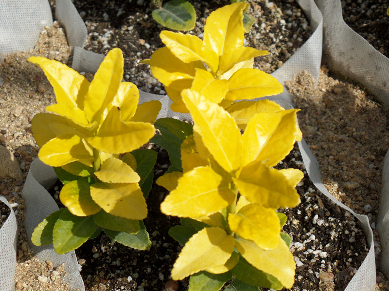 彩葉苗木中的佼佼者金鑲玉黃楊,在不遠(yuǎn)的將來(lái)必定會(huì)給彩色世界帶來(lái)一場(chǎng)強(qiáng)大革命,給美麗中國(guó)更添彩色,特別是把它用在色塊上(也叫模紋),視覺絕對(duì)勝于金葉女貞、金森女貞、金葉榆等植物,事實(shí)就擺在我們面前,全年不落葉就像黃金般奪目,修剪次數(shù)少,不光退,不裸露,耐低溫零下16度安全過冬,不怕披霜雪,不怕風(fēng)吹日曬等特點(diǎn),金鑲玉黃楊實(shí)為苗木中的極品。