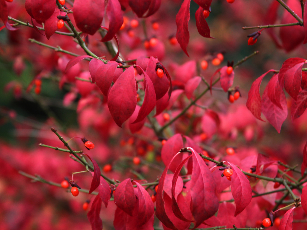 火焰衛(wèi)矛作為背景植物栽種,或2至3株成堆栽植,或單株孤植,有的旁邊配以綠色或金色的低矮松柏類植物,或是一些闊葉的小灌木,不同色彩、不同種類的植物相互搭配,既豐富了種類,符合生物多樣性的需求,又可打破木本植物相對單調的色彩。