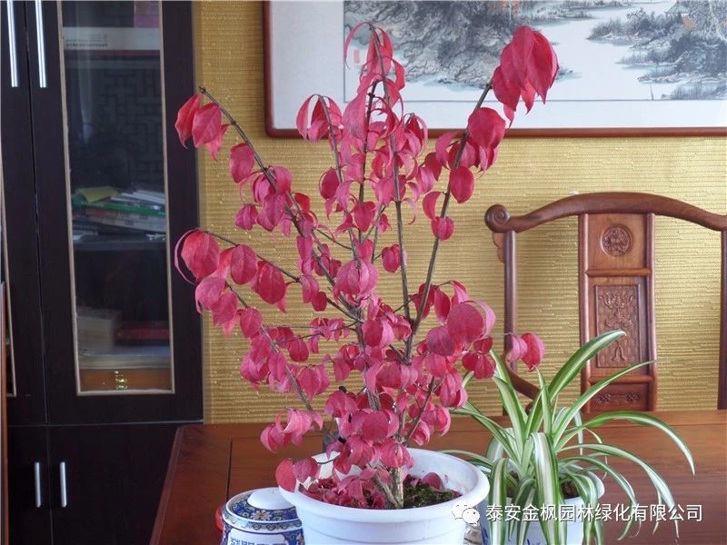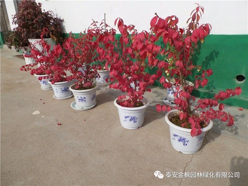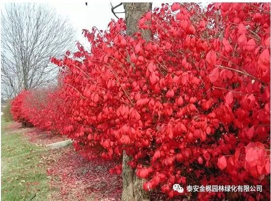 深秋葉色火紅,其余季節(jié)葉片挺拔,為綠色,是非常漂亮的秋冬彩葉觀賞植物;株型飽滿整齊,耐修剪,非常適合做彩色樹籬;高可達2-3米,適應(yīng)性強,可作為背景植物栽種;或2-3株成堆栽植,或單株孤植;有的旁邊配以綠色或金色的低矮松柏類植物或一些闊葉小的小灌木;不同色彩、不同種類的植物相互搭配,既豐富了種類、符合生物多樣性的需求,又可打破木本植物相對單調(diào)的色彩。