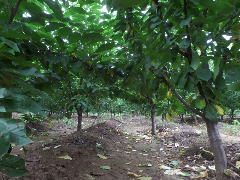 為了促使幼樹早結果,在整形的基礎上,對各類枝條的修剪程度要輕,以生長期的摘心為主.以控制枝梢旺長,增加分枝,加迅擴大樹冠.冬季修剪時間應推遲到萌芽前,以避免剪口失水干枯.除對主枝、延長枝短截和適當間疏一些過密、交叉枝外,其余中、小枝要盡量保留.